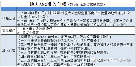 根据,银监会2013年发布的《关于地方资产管理公司开展金融企业不良资产批量收购处置业务资质认可条件等有关问题的通知》(银监发[2013]45号)