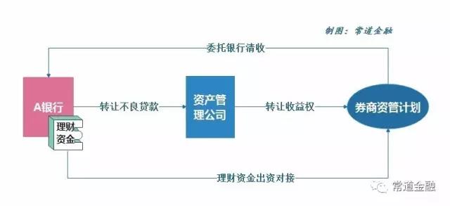 几家银行共同打包不良资产转让给资产管理公司,资产管理公司再将收益权转让给资管计划。其中银行和资产管理公司的资金通过信托公司再转给资管计划。